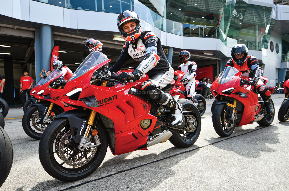 Other trainers included official Ducati stunt rider Emilio Zamora as well as Ferruccio Lamborghini – yep, that Ferruccio’s grandson. In fact, there were trainers from most of Ducati’s APAC markets, including India’s Dilip Lalwani, who holds the current lap record for a motorcycle at the BIC.
